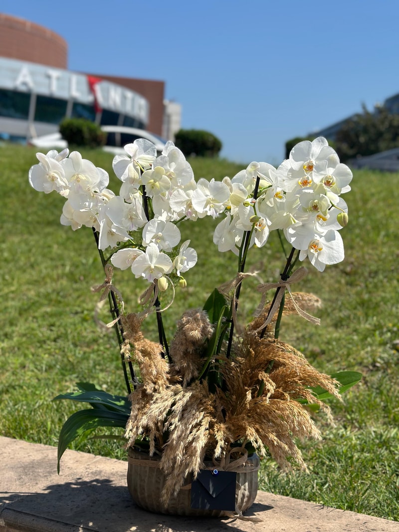 4 Dallı Beyaz Orkide Aranjmanı