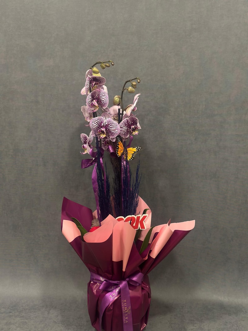 İthal Mor Kırçıllı Çift Dallı Orkide